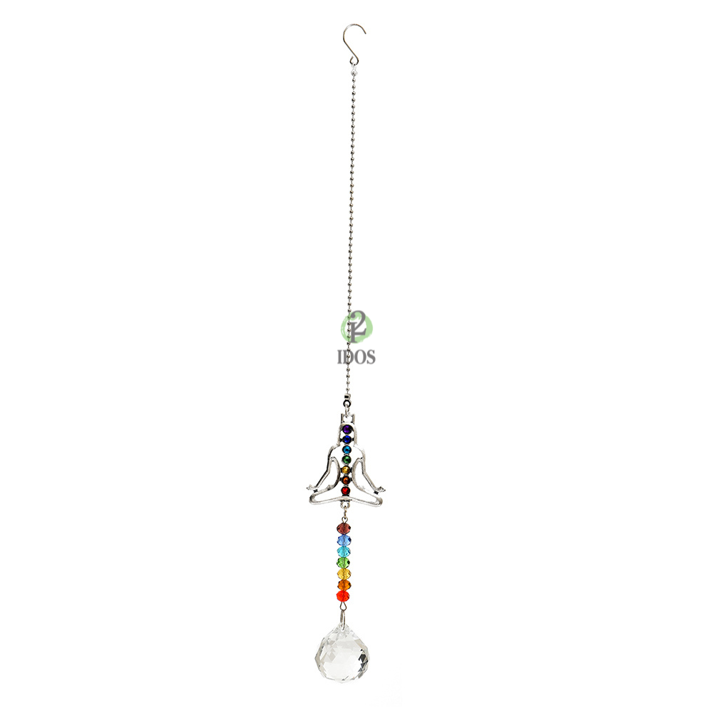 Colgante con forma de 7 chakras y una bola facetada en la punta